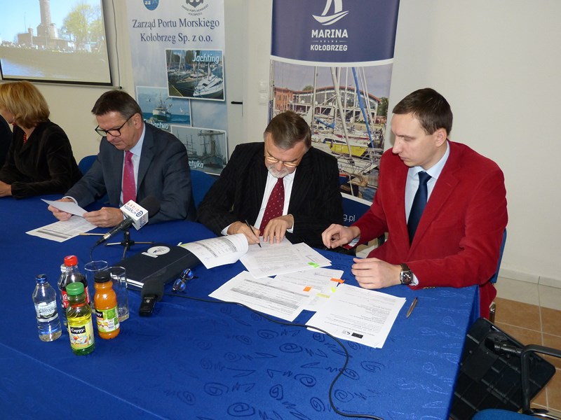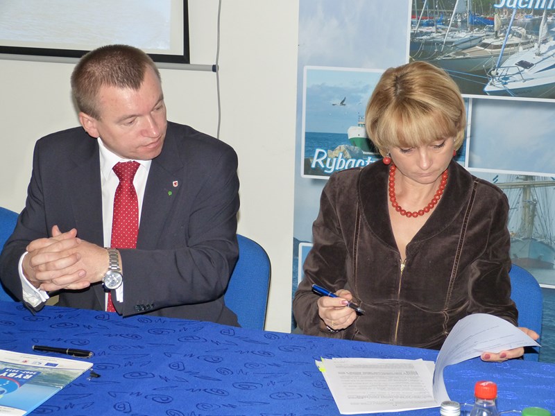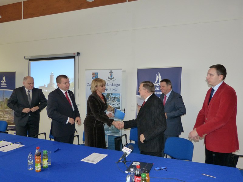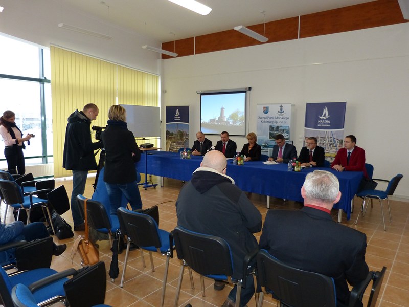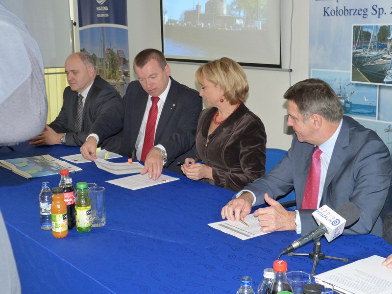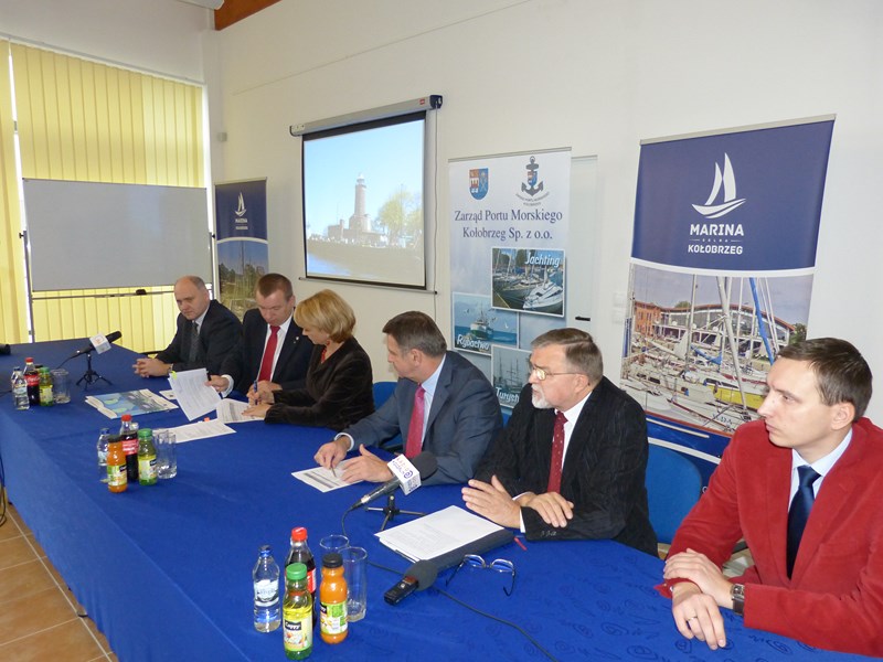 Modernizacja systemu odbojnic przy Nabrzeżu Pilotowym w Porcie Kołobrzeg” w ramach środka 4.1. Programu Operacyjnego „Zrównoważony rozwój sektora rybołówstwa i nadbrzeżnych obszarów rybackich 2007-2013” z przedstawicielami Samorządu Województwa Zachodniopomorskiego.