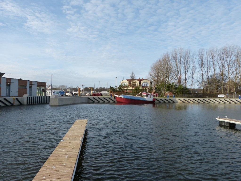 Inwestycja zrealizowana została na terenie Portu Handlowego przy ul. Portowej. Nabrzeże ma 200 metrów długości a głębokość techniczna wynosi ok. 5 metrów. Nabrzeże zmodernizowano poprzez wbicie pali stalowych wzmacniających konstrukcję, wykonano również nowy betonowy oczep. W ramach inwestycji wyposażono nabrzeże w dostęp do wody i prądu, a także zmodernizowano sieci: wodociągową, elektryczną i kanalizacji deszczowej. Zmodernizowano również tory kolejowe, które biegną przez całą długość nabrzeża a teren jest oświetlony poprzez energooszczędne lampy LED. W ramach wyposażenia zamontowano nowe urządzenia cumownicze, odbojnice, szafki elektryczne i hydranty. Inwestycja została dofinansowana w 100 % ze środków europejskich z Programu Operacyjnego Ryby na lata 2007-2013. Wartość robót budowlanych wyniosła 4 885 449,19 zł netto.
