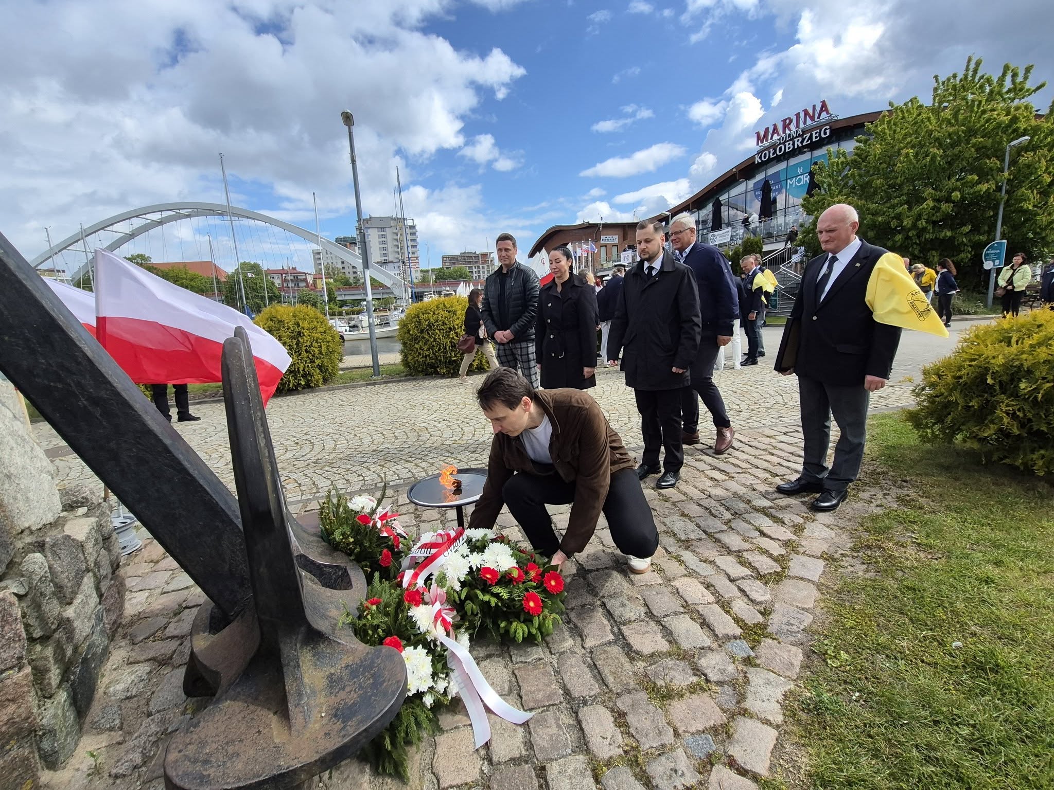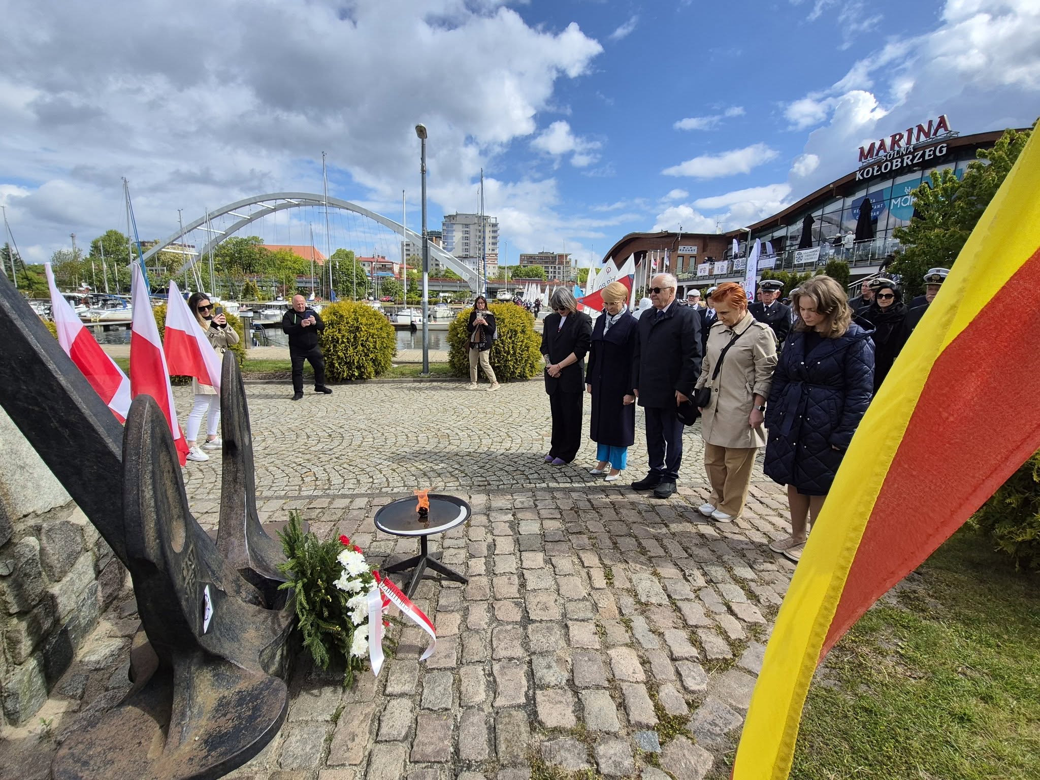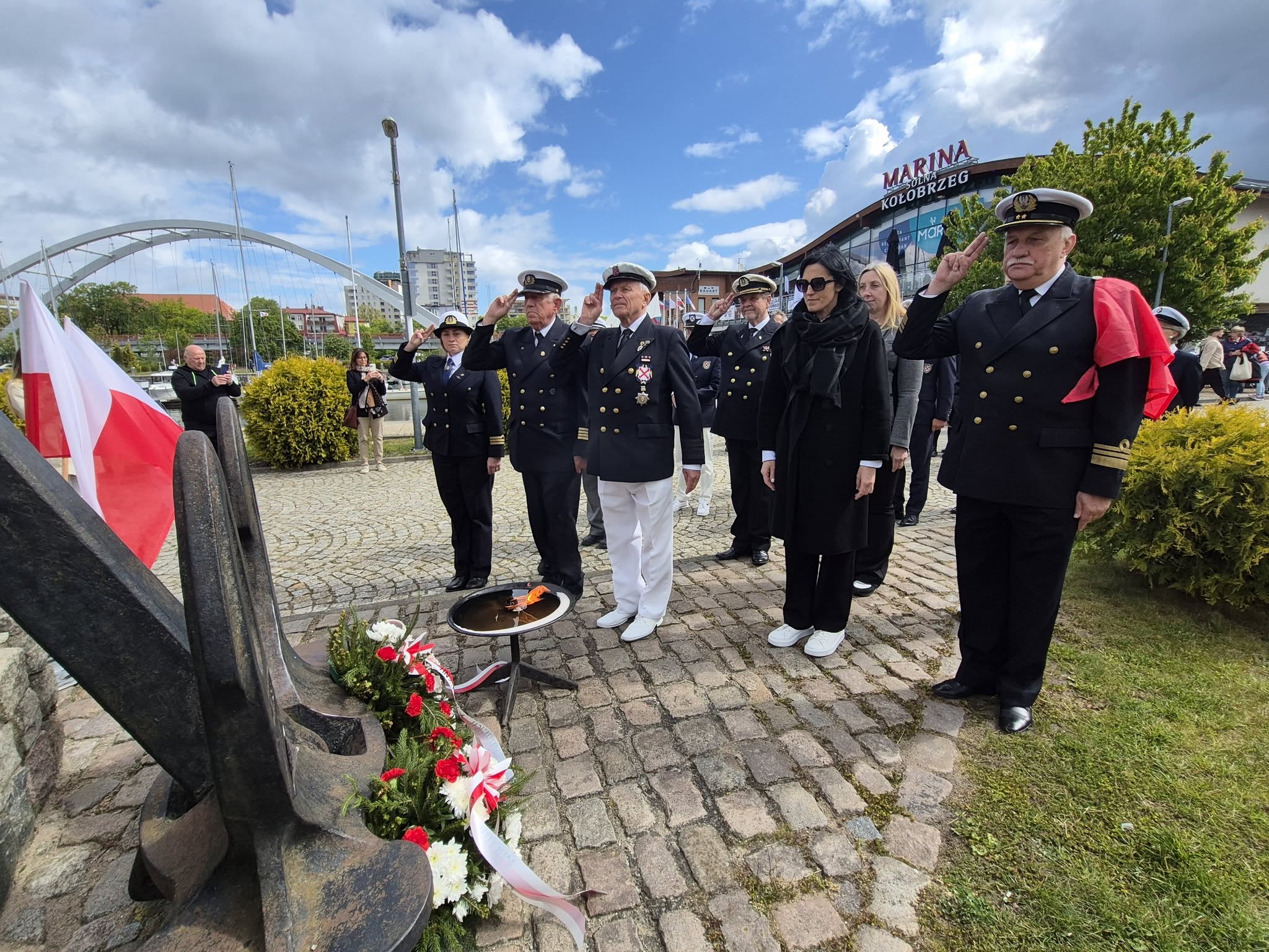 Tradycyjnie, uroczystość poprowadził Marek Padjas, prezes kołobrzeskiego oddziału Ligi Morskiej i Rzecznej oraz kapitan i grotmaszt Bractwa Kaphornowców. Stowarzyszenie skupiające żeglarzy, którzy opłynęli Przylądek Horn, świętuje 50 – lecie istnienia. Z tej okazji honoruje swoich przyjaciół pamiątkowymi medalami. Taki medal w sobotę otrzymał gospodarz kołobrzeskiego portu, Artur Lijewski, prezes Zarządu Portu Morskiego Kołobrzeg. – Dziękuję za gościnność i otwarte serce oraz to co robicie dla kołobrzeskiego, polskiego i światowego żeglarstwa, bo przecież w marinie cumują jachty z całego świata – mówił w kierunku A. Lijewskiego Marek Padjas. Prezes Lijewski odpowiedział: – To nie tylko moja zasługa, ale całego mojego zespołu, który zawsze wiernie stoi za mną i mnie wspiera we wszystkich działaniach. Cieszę się, że wybieracie państwo port w Kołobrzegu, a naszą marinę na uhonorowanie tak ważnych uroczystości. Żeglarzom życzę udanego sezonu. Każdego roku temu wydarzeniu towarzyszy złożenie wiązanek kwiatów pod pomnikiem ku czci Ludzi Morza, którzy Odeszli na Wieczną Wachtę.