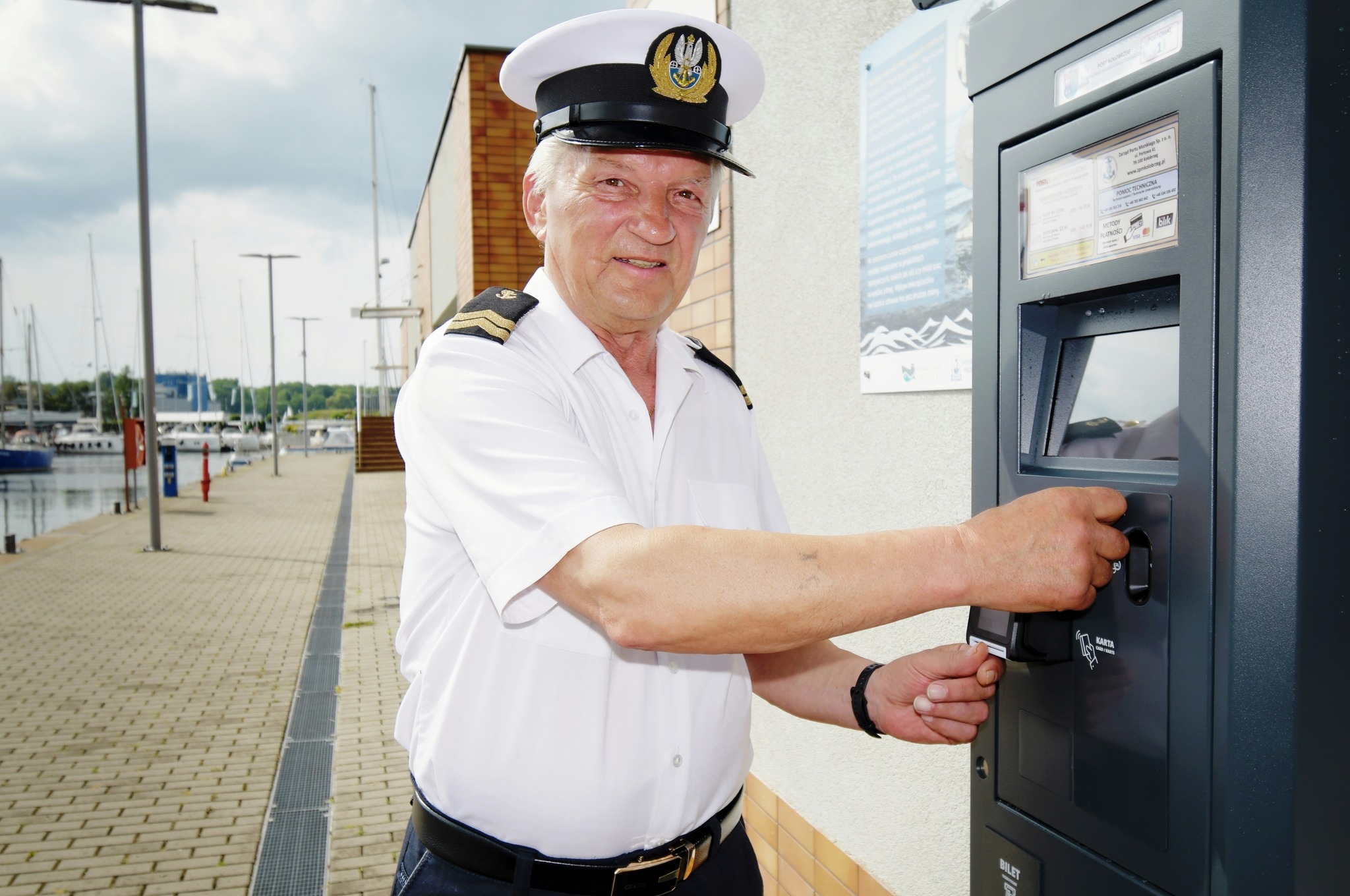 Nowe urządzenie umożliwia żeglarzom samodzielne rozliczenie opłaty postojowej bez konieczności wizyty w bosmanacie. Dla tych, którzy nadal cenią sobie bezpośredni kontakt z naszym bosmanem, panem Krzysztofem Sieniawskim – informujemy, że nadal pozostaje on do Państwa dyspozycji, jak zawsze – pomocny i dostępny.
