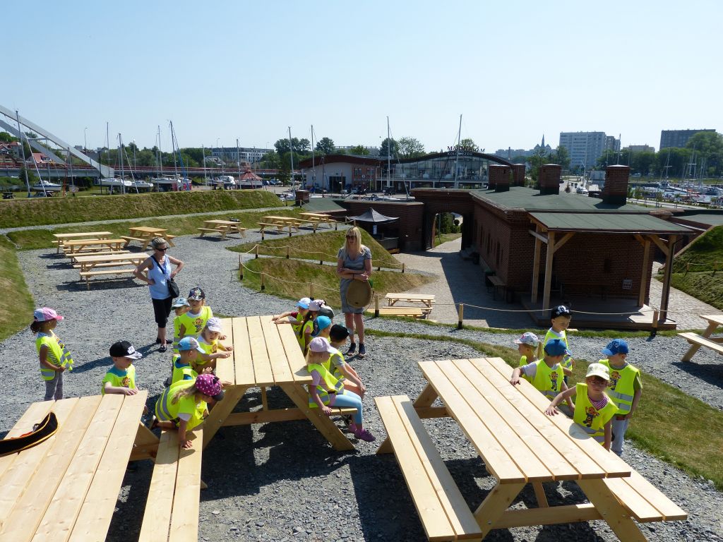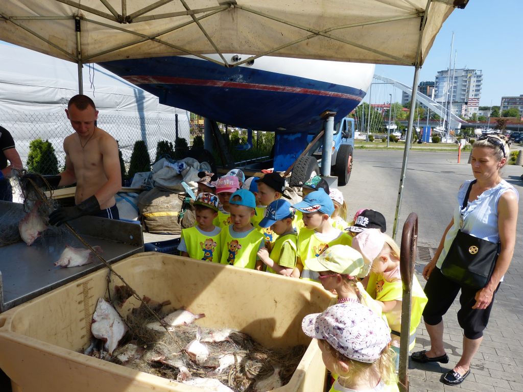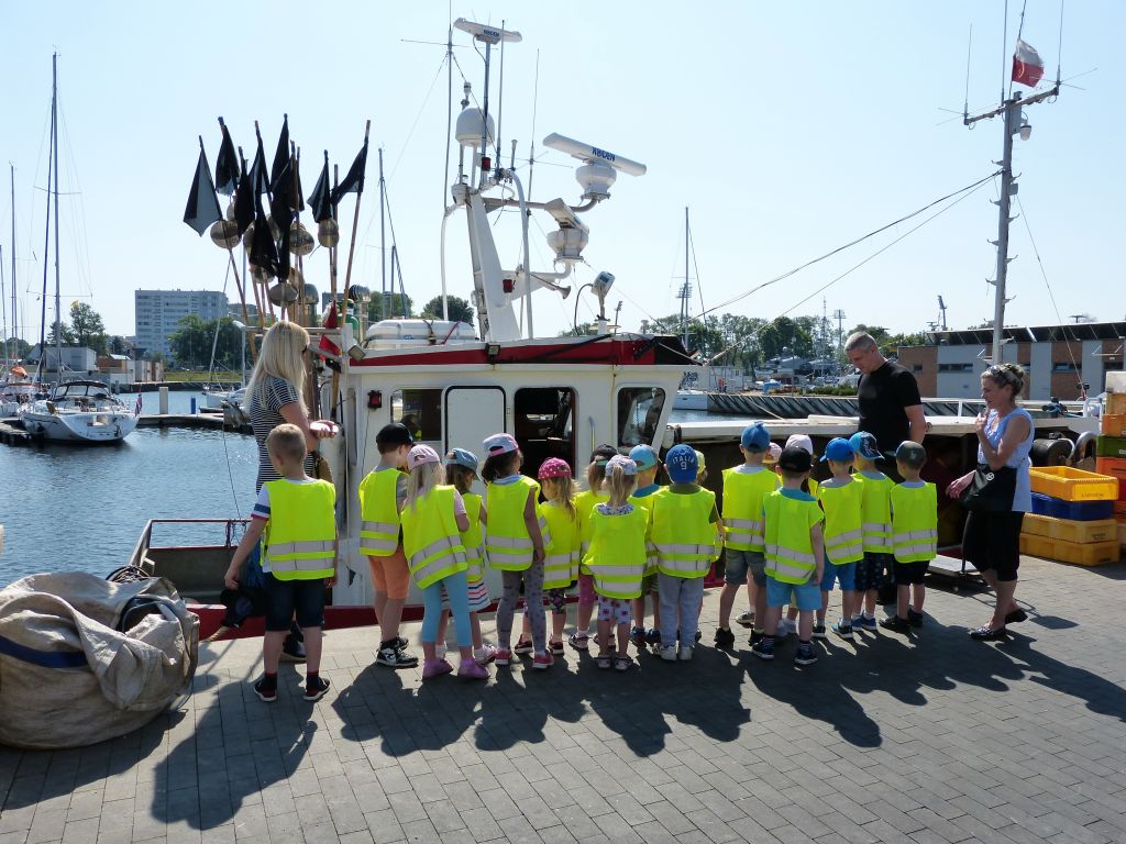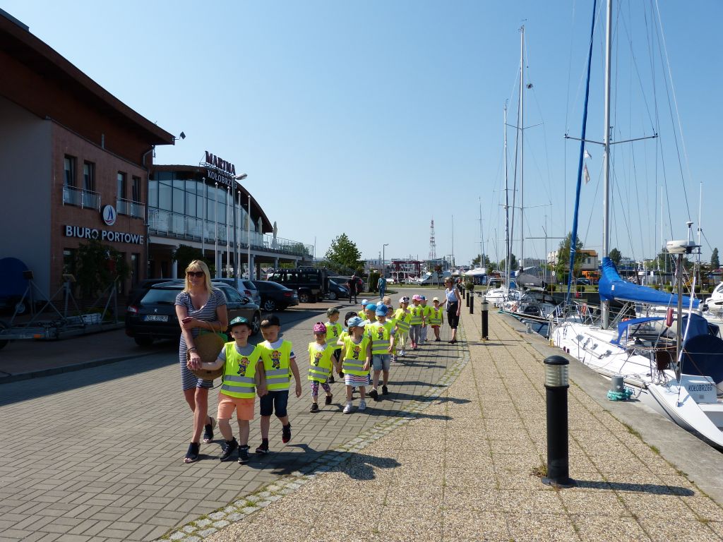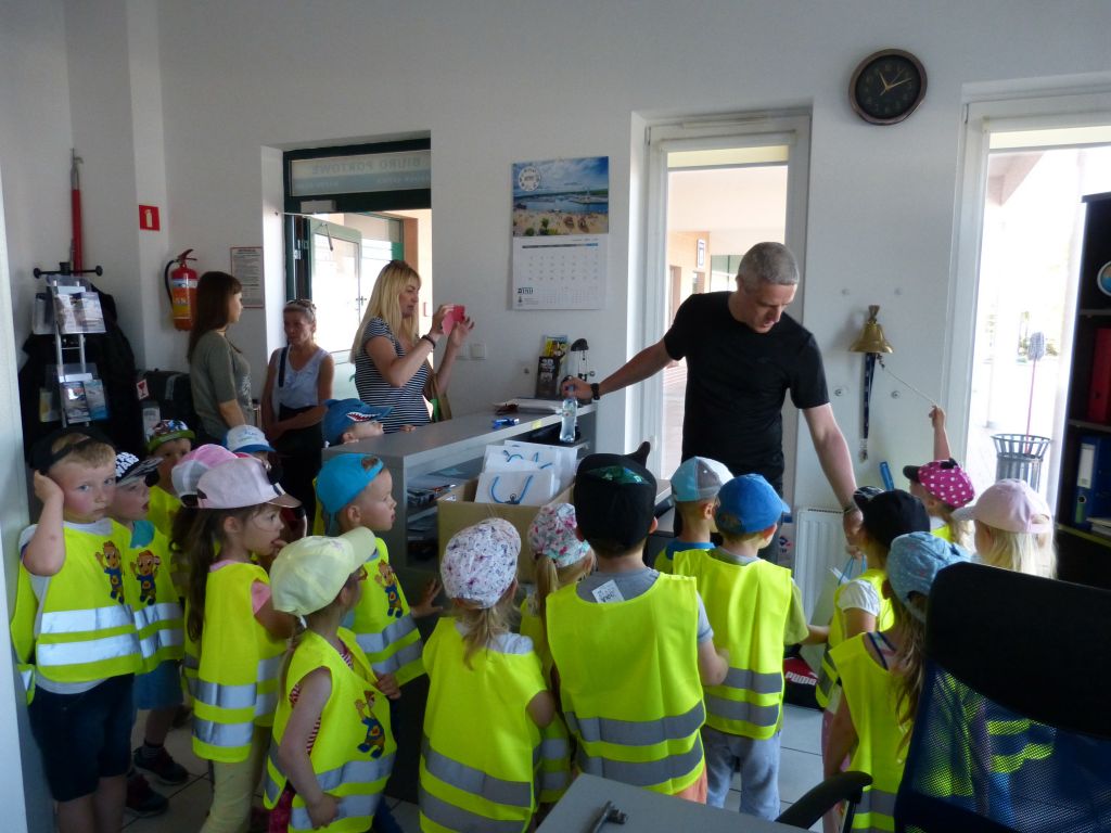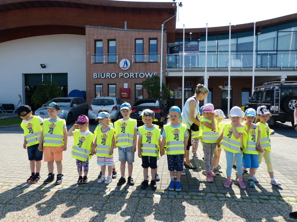 W środę 5 czerwca marinę odwiedziła grupa “Słoneczka” z Przedszkola nr 7. Przedszkolaki wysłuchały pogadanki morskiej na różne tematy związane z portem jachtowym, rybackim, handlowym i turystycznym. Zaprezentowano maluchom pokaz wiązania węzłów, opowiadano o jachtach, rybach morskich i wyposażeniu różnych jednostek stacjonujących w porcie. Dzieci miały okazję oglądać rybaków pracujących przy sieciach oraz na kutrze, który przywiózł świeże ryby z morza. W programie wizyty była także wspinaczka na nasyp w odrestaurowanej tawernie. Na koniec pobytu w porcie małym gościom wręczono drobne upominki. Od sympatycznych dzieci otrzymaliśmy ciekawy obrazek namalowany tuż przed wizytą w marinie.