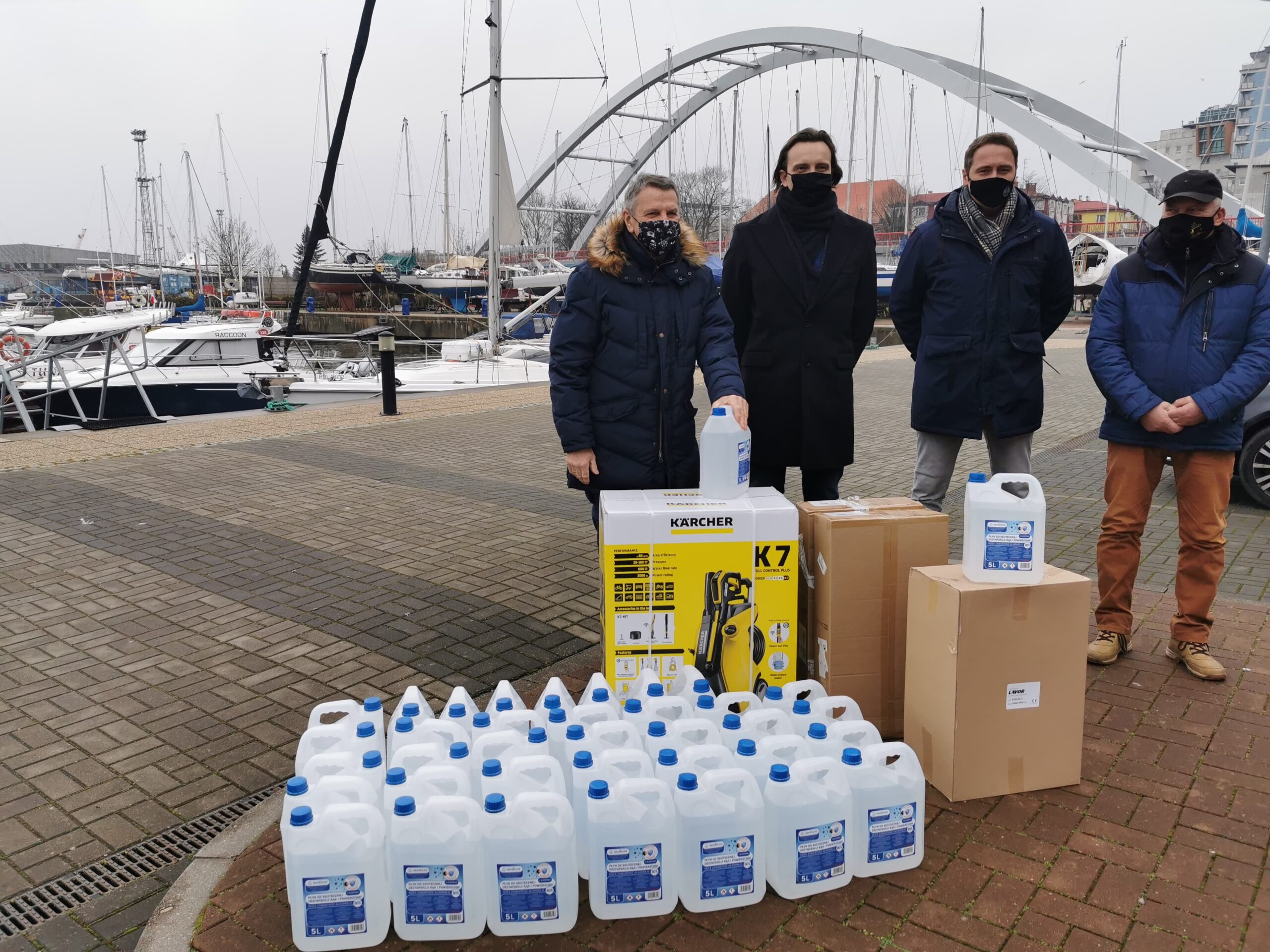 Przekazanie odbyło się dzisiaj w Porcie Jachtowym, przed biurem portowym. Prezes Zarządu Portu Morskiego Kołobrzeg Artur Lijewski podziękował w imieniu pracowników Zarządu Portu Morskiego Kołobrzeg za pomoc materialną udzieloną dla Mariny Solnej w walce z trwającą pandemią koronawirusa. Dzięki tym środkom zwiększy się poczucie bezpieczeństwa użytkowników portu w codziennej pracy. Podarowane środki pomogą nam w walce z pandemią.
