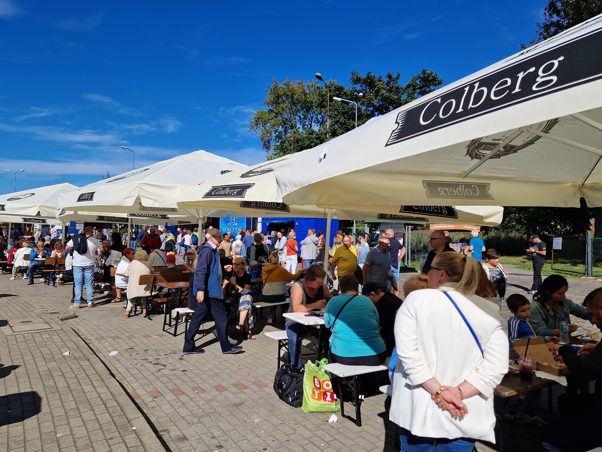 Równo o godzinie 14:00 Prezydent Miasta Kołobrzeg Pani Anna Mieczkowska, Prezes Stowarzyszenia Rybacka Lokalna Grupa Działania Morze i Parsęta Pan Bogdan Błaszczyk i Prezes Zarządu Organizacji Producentów Ryb Bałtyk Pan Marcin Mojsiewicz oficjalnie otworzyli V Festiwal Rybny w Kołobrzegu.