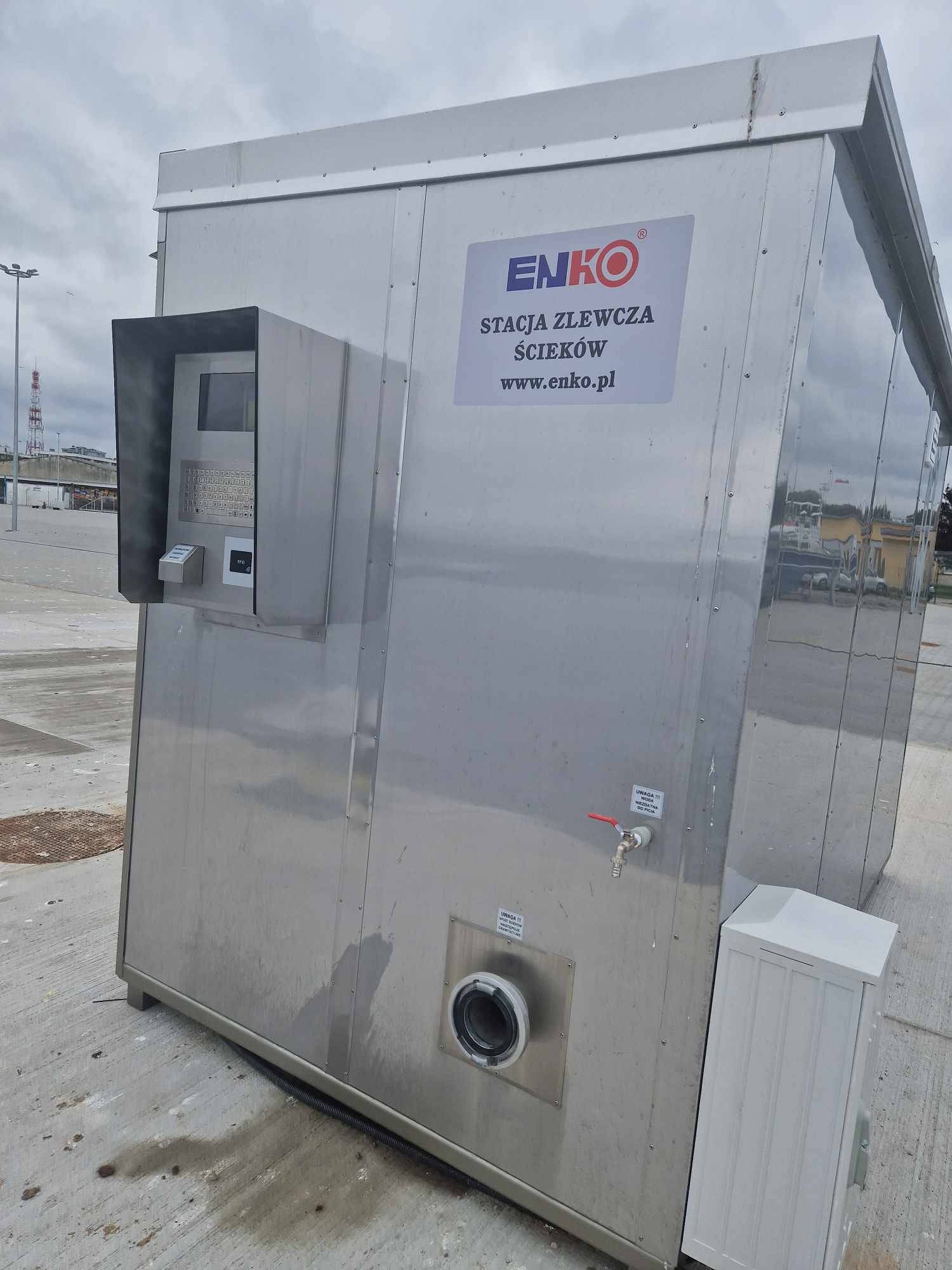– wąż spustowy wraz z odpowiednimi złączami i wieszakiem do zainstalowania przed kontenerem,