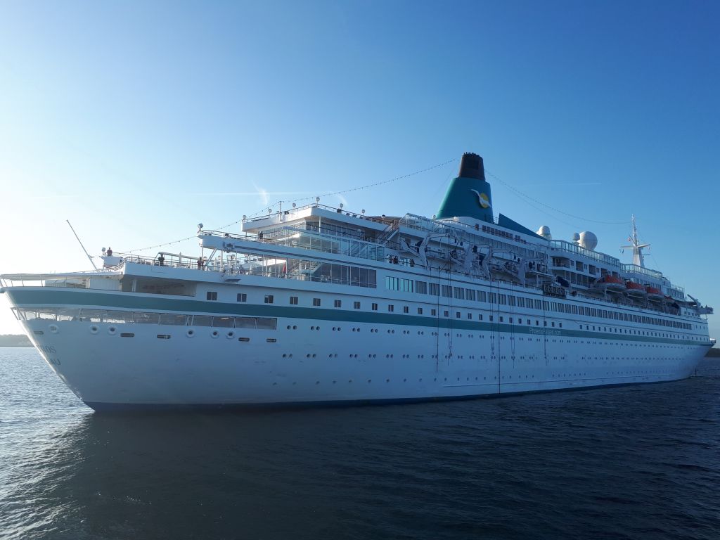 W piątek 14 września na redzie Kołobrzegu rzucił kotwicę wycieczkowiec “ALBATROS”. Jest to pełnomorski statek pasażerski. Około 500 pasażerów zostało przetransportowanych do Mariny Solnej małymi łodziami należącymi do statku. “Albatros” ma ponad 205 m długości, 27 m szerokości oraz 7,3 m zanurzenia. Jego tonaż pojemnościowy brutto to 28 518, a nośność – 5 936 t. Wycieczkowiec pływa pod bahamską banderą po wielu morzach odwiedzając Europę, Azję, Australię, Nową Zelandię, Południową Afrykę, Południową Amerykę, Kanadę. Armator TTS “Albatros” oferuje także przeprawy przez Kanał Panamski. Jednostka została zbudowana w helsińskiej stoczni Wärtsilä. Do eksploatacji wprowadzono ją w 1973 r. jako Royal Viking Sea w barwach Royal Viking Line. Od 2005 r. do teraz jej operatorem jest Phoenix Reisen GmbH. Wycieczkowiec zabiera na pokład 812 pasażerów dla których pracuje 340-osobowa załoga. Znajdują się na nim m.in. restauracje, kasyno, fitness club, basen, pole golfowe, teatr i kino.