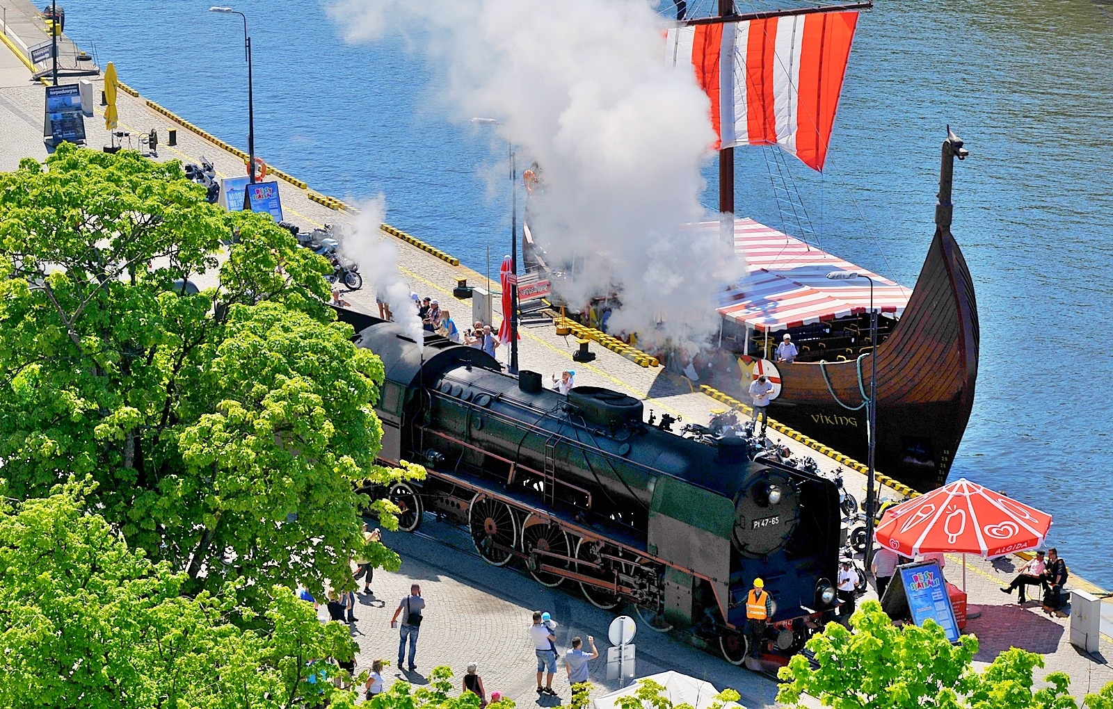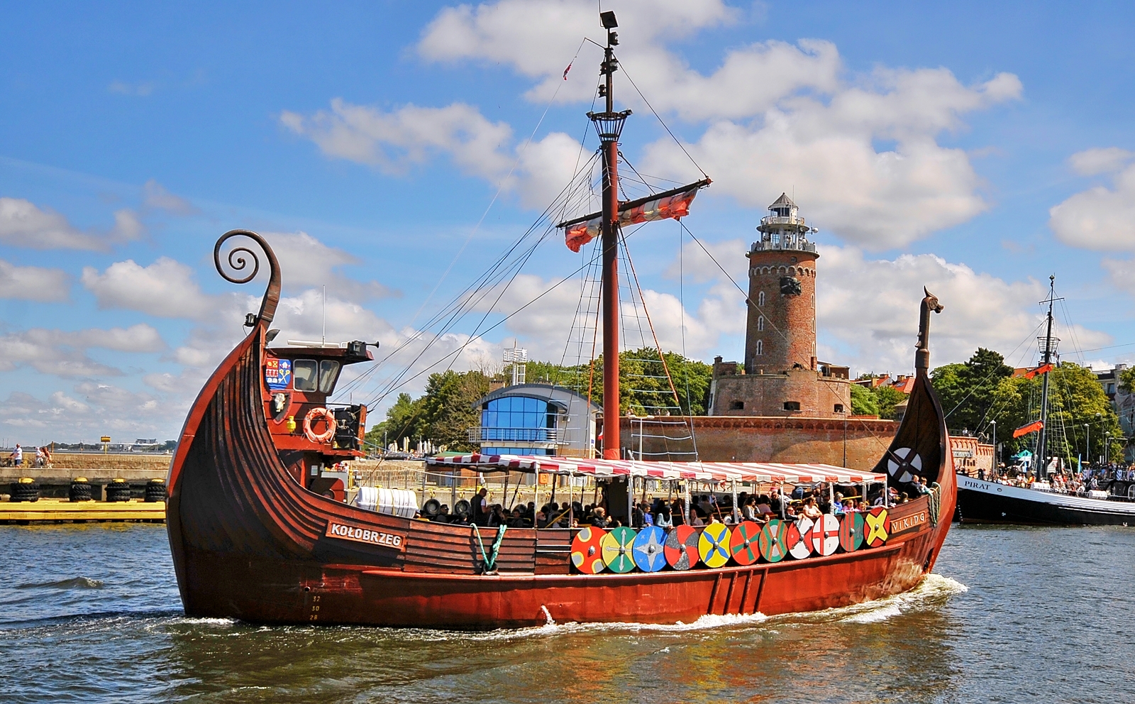 Przy Nabrzeżu Pilotowym cumują trzy statki, stylizowane na historyczne jednostki, które powstały na bazie kutrów rybackich. Wypływają w rejsy trwające około 40 minut. Viking działa na wyobraźnię drewnianymi burtami z tarczami, rzeźbą smoka na dziobie i atrapami wyposażenia skandynawskich żeglarzy – wojowników.