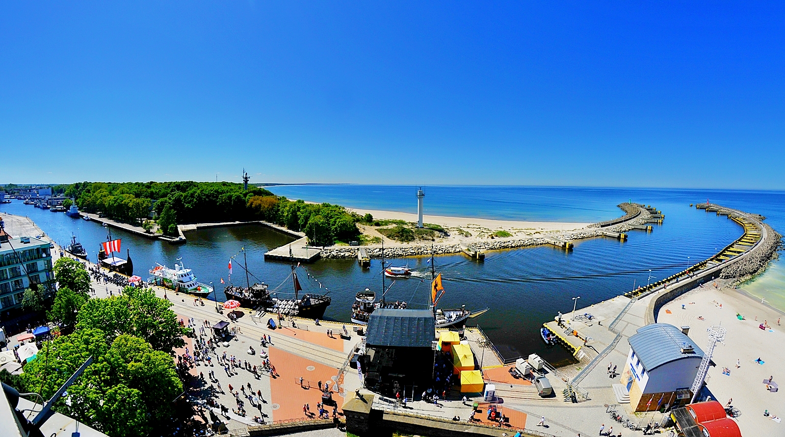 Być w Kołobrzegu i nie odwiedzić Portu Pasażerskiego? Niemożliwe! Kierunek wyznacza latarnia morska, a na miejscu oczy cieszy widok cumujących tu statków białej floty i 50 – metrowe koło widokowe.